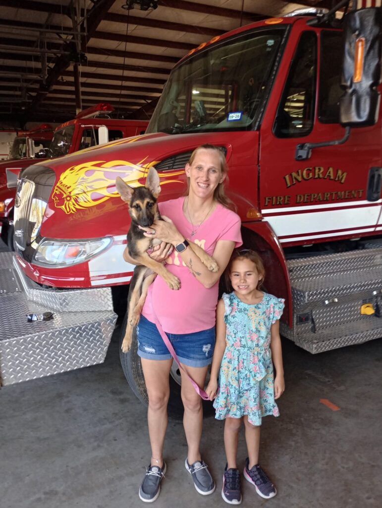 I asked Amanda to share some adventures and what she would do with a German Shepherd puppy and this was her reply, “My name is Amanda and I am USAF disabled veteran where I served as an aircraft engine mechanic, with two deployments to the desert during “Operation Enduring Freedom” and “Operation Iraqi Freedom”. I am now an engine records assistant on an air base in Oklahoma. I am an Army wife to an Army veteran and a mother to our two wonderful children. I suffer from Ménière’s disease which is a progressive deafening disease. It is a struggle everyday, with attacks of vertigo, tinnitus, hearing loss, dizziness and more. Unfortunately there is no cure and as my attacks lesson I will lose more and more of my hearing eventually becoming deaf. I have spoken with my doctors and they have agreed that with how debilitating this disease can be, a service dog could help me. I need assistance with guiding while walking, retrieving, alerting, and responding to my side when I have an attack. I also suffer from PTSD and anxiety so aid and that would be wonderful. My dream is to have a Service Dog who can go through my life by my side ever learning tasks that will help me lead a semi-normal life. And be able to be more available for my children. Thank you for listening to my story.”