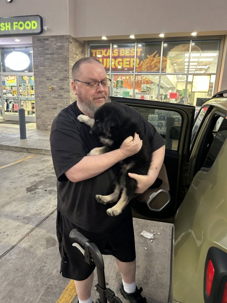 We awarded him a good dog that always shows comfort. On the roughest of days, a dog that just wants to love on you and can make most any situation better. he now will love to take his dog with him everywhere he goes because it is part of his wonderful family.